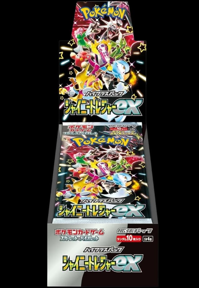Shiny Treasure ex [SV4a] is the most sought-after Japanese High Class Pack of the SV era, hundreds of shiny Pokemon ex cards including shiny Charizard ex, Pikachu ex, and Mewtwo ex. Every pack contains premium pulls with dazzling holo shiny treatments.
